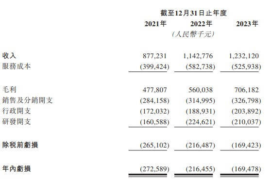财务方面,于2021年、2022年及2023年,迈富时管理分别实现收入约为人民币8.77亿元、11.43亿元以及12.32亿元;同期,年内亏损分别约为人民币2.73亿元、2.16亿元以及1.69亿元。