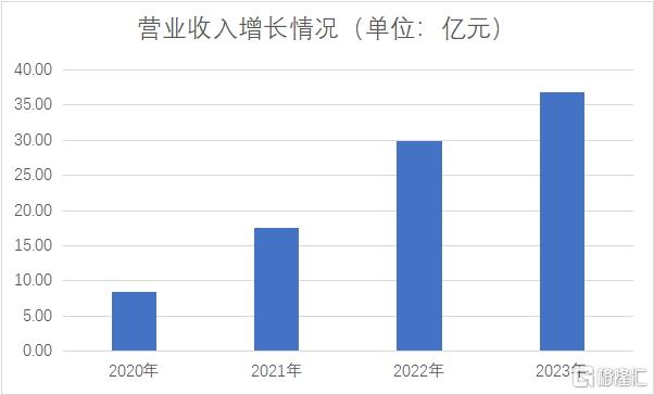 从2019年及2023年,公司营业收入从5.24亿元增长到36.91亿元,增长了约6倍,年均复合增长率达到了62.87%。这种持续四年保持稳健且较快的增长,在上市公司中并不多见,在同行数字化医疗上市公司中也堪称优秀。