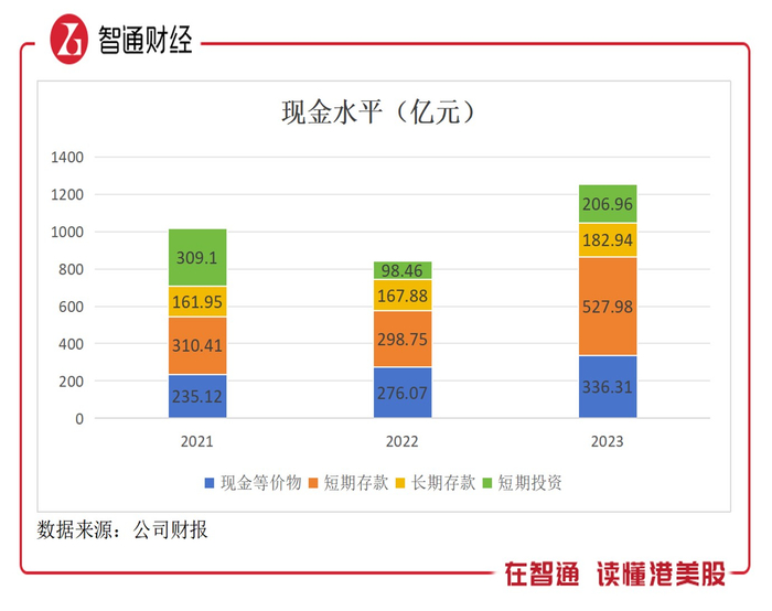 截止2023年末,小米账上的现金等价物、短期存款、长期存款及短期投资分别为336.31亿元、527.98亿元、182.94亿元以及206.96亿元,合计高达1254.2亿元,同比提升了49.1%,占比总资产达38.7%。更为重要的是,该公司的现金流是健康的,扣去短长期的借款,仍有975.6亿元。