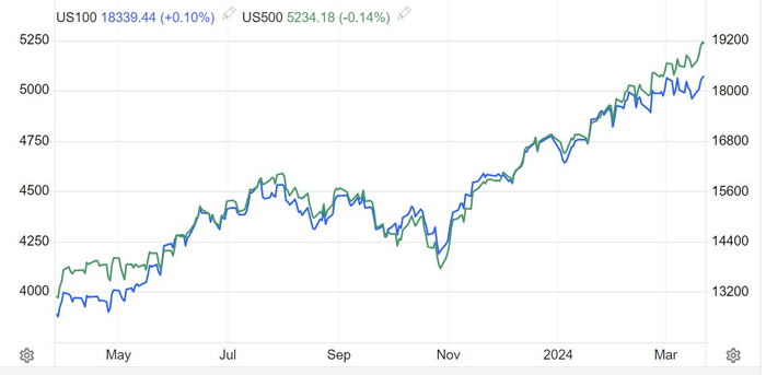 标普500指数(S&P 500 index),以及涵盖美股最热门科技股的纳斯达克100指数的大部分涨幅均由“美股七大科技巨头”(Magnificent Seven)所引领的大型成长型股票所全面推动,这一点对于纳斯达克100指数的影响最为明显。因此,美股市场的小盘股和大盘股之间,以及成长股和价值股之间无论是整体估值还是资金流入规模,可谓存在“重大脱节”。