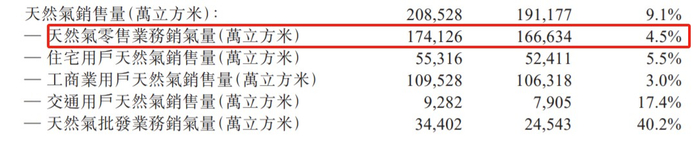 销气业务收入的增长主要得益于销售气量的提升。报告期内,天伦燃气的总销气量为20.85亿立方米,同比增长9.1%。其中,零售气量同比增长4.5%。