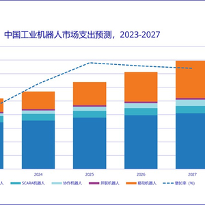 IDC发文称,尽管2023年中国工业机器人市场发展放缓,但2024年开春以来国家相继提出培育新质生产力,推进大规模设备更新和消费品以旧换新等制造业相关高质量发展的战略部署,为工业机器人的持续部署推广提供了政策支持和积极助力。IDC预测,中国制造业机器人密度到2027年将约650台/万人,中国用户在工业机器人产品的市场支出到2027年将增至约160亿美元。
