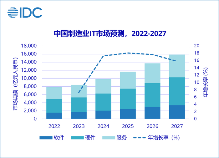 IDC:预测27年制造业整体IT市场将增长至17189.9亿 五年年复合增长率16.5%