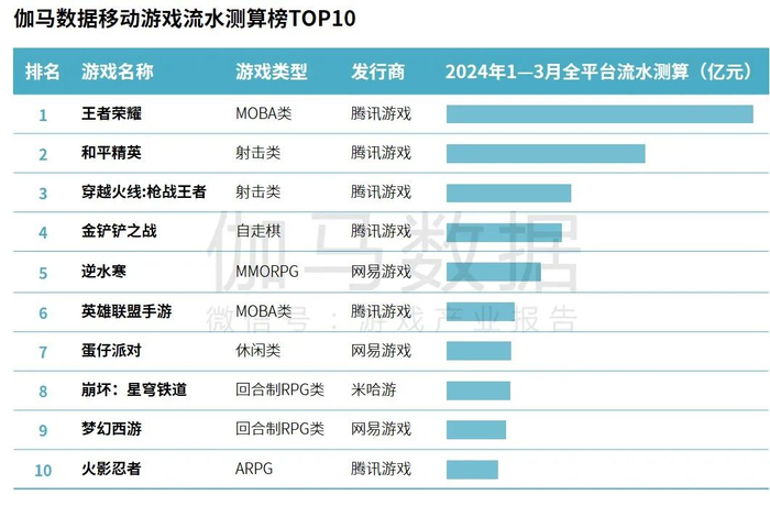 伽马数据移动游戏流水测算榜TOP10:腾讯游戏旗下产品占据6席,《金铲铲之战》流水同比增长显著