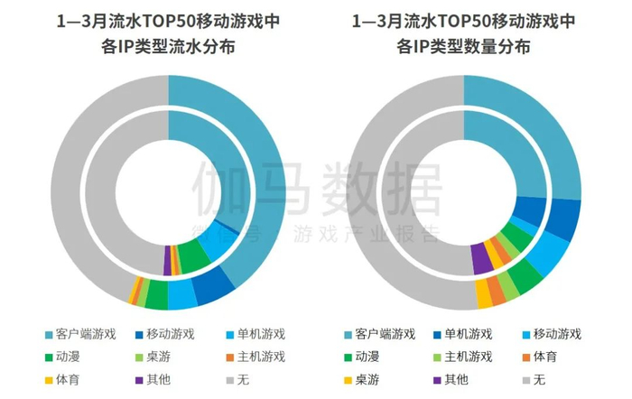 流水TOP50游戏IP分布:客户端游戏IP改编产品流水份额增加 移动游戏IP改编产品流水、数量份额均增加