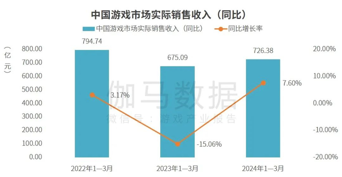 2024年1—3月中国游戏市场规模:市场规模为726.38亿元移动、客户端市场共同作用同比增长