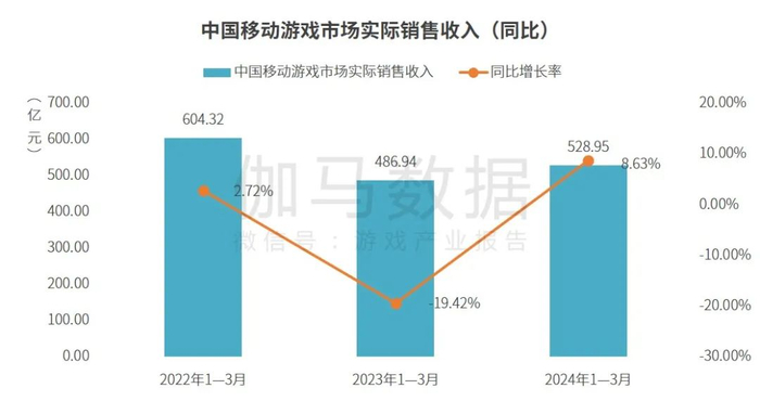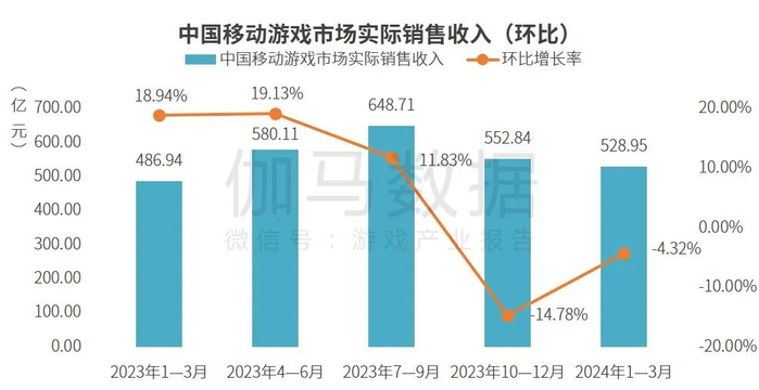 2024年1—3月移动游戏市场规模:市场规模为528.95亿元 部分长线产品和同比新游带来同比增长