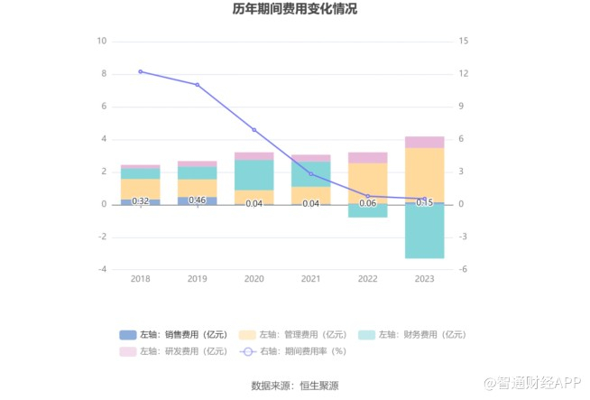 而在业绩下滑的同时,公司各项费用却大幅增长。2023年,销售费用同比增长152.62%,管理费用同比增长33.57%,研发费用同比增长6.47%,财务费用由去年同期的7872.84万元变为3.31亿元,期间费用率为0.53%,较上年同期下降0.25个百分点。