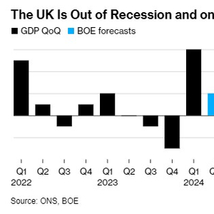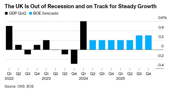 这些数据标志着近70年来最温和的经济衰退的决定性结束——去年下半年英国经济从峰值到低谷下降了0.4%。这一数据也可能会使英国央行考虑何时放松利率的问题复杂化,因为经济增长走强可能加剧通胀压力,官员们仍不确定通胀压力是否得到控制。