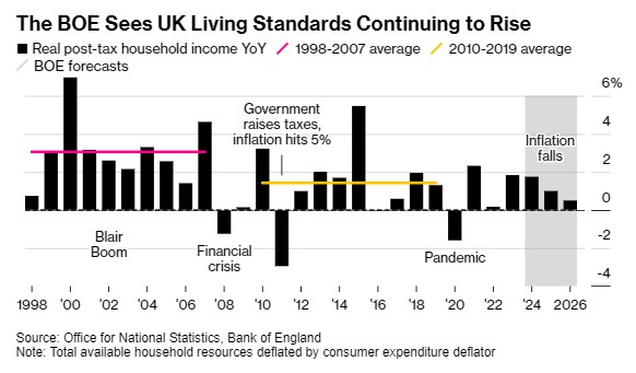RSM UK经济学家Thomas Pugh表示:“对英国经济来说,这是一个比过去四年光明得多的时期的开始。实际收入的增加、减税和较低的利率将在今年下半年显著提振家庭可支配收入,而消费者信心的复苏将确保大部分增加的收入被花掉。”