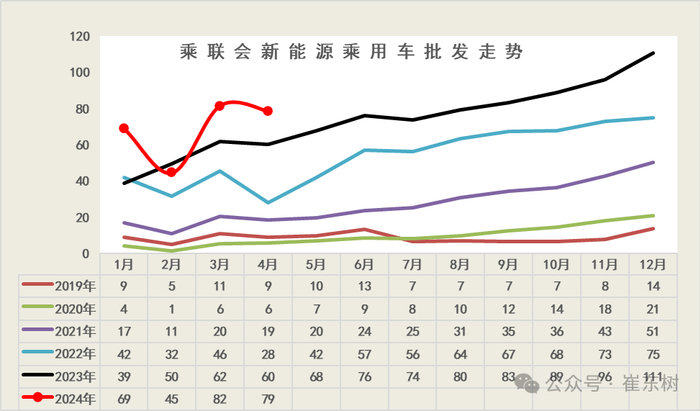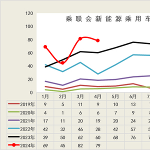 2024年4月新能源乘用车批发销量达到79万辆,达到上年8月水平。 由于春节因素和降价干扰,2月回落较大,3-4月市场逐步恢复增长。