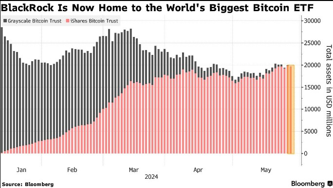 贝莱德旗下的iShares比特币信托基金自今年年初在美国上市以来,已迅速攀升至全球最大的比特币基金,总资产累积接近200亿美元。