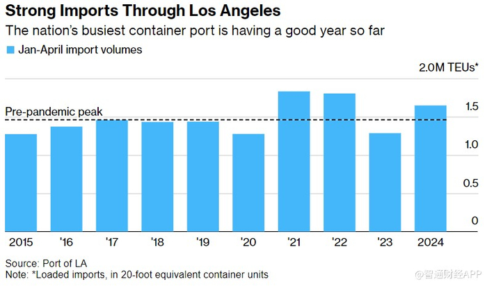 经由洛杉矶港的进口强劲