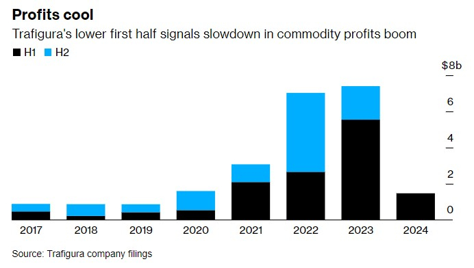 由于主要能源和金属市场交易趋于平淡,大宗商品贸易巨头托克集团(Trafigura Group)公布了自2020年以来最小的上半年利润,同比下降73%。