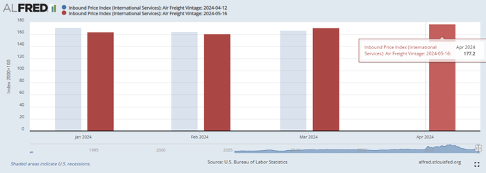 自今年4月起,全球快递业巨头UPS和FedEx将针对82个邮政编码区域的快递收取配送区域附加费。DHL在年初就已宣布提高其全球平均价格。美国4月份空运入境价格指数更是创下今年以来的新高。