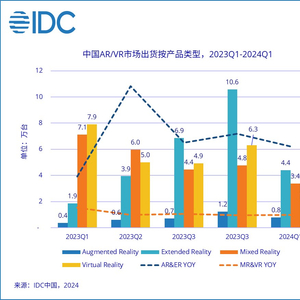 IDC中国分析师叶青清认为,2024年一季度AR/VR厂商脚步放缓,均在为后期产品发布及出货做铺垫。2024年多重因素将进一步推动整体市场的发展,结合AI技术的加速升级、供应链成本下探结构完善、渠道体系加速搭建以及入局厂商的增加,相信今年中国AR/ER市场将迎来更大的技术突破,而VR/MR市场将迎来大家期待已久的回暖增长。