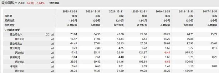 从收入来看,2023年森松国际营收73.6亿元,较22年增长13.5%。归母净利润为8.45亿元,同比增长26%,营收利润实现双位数增长。过去3年,森松国际也是保持着高增长。
