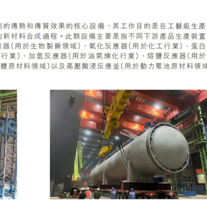 森松国际是一家压力容器设备制造商,指在大容积设备内实现理论上可达到的传染和传质效果的核心设备。例如,用于生物制药领域的生物反应器,用于化工行业的氧化反应器,以及用于油气行业的加氢反应器等。