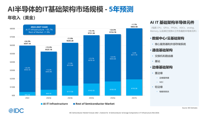 IDC:预测到2027年底AI半导体的IT基础架构市场规模将达到1933亿美元