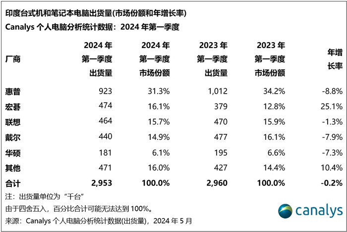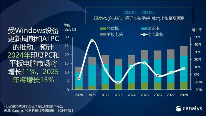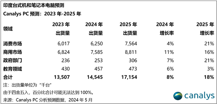 Canalys:预计2024年印度PC和平板电脑出货量将增长11%