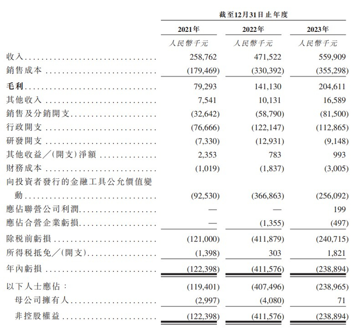 财务方面,于2021年、2022年以及2023年,圣贝拉实现收入分别约为2.59亿元、4.72亿元、5.60亿元人民币;同期,公司实现毛利分别约为7929.3万元、1.41亿元、2.05亿元人民币。