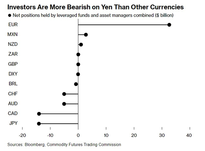 投资者对日元也比其他货币更悲观