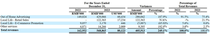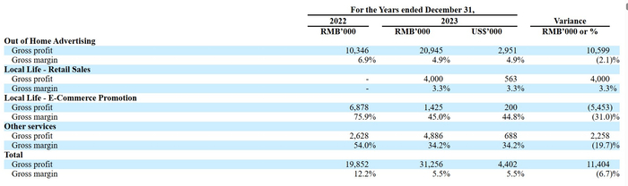 具体来看,2023年内,联掌门户集中更多的资源在户外广告服务上,公司于报告期内拓展新客户46个,这使得户外广告业务的收入大增187.9%至4.29亿元。同时,联掌门户于2023年开启了本地生活的零售销售服务,该业务做为新增长点从2022年的零收入至2023年录得1.22亿元营收。此外,门禁智能设备及软件(即其他服务)的收入增长192.9%至1426.6万元,这主要得益于智能社区数字平台本地软件的永久许可的销售增加了580万元收入以及社区门禁设备收入增加了380万元。