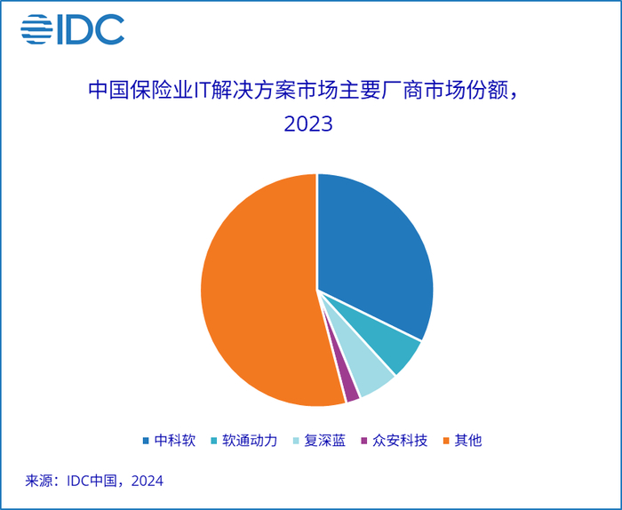 2023年中国保险业IT解决方案市场格局如下图: