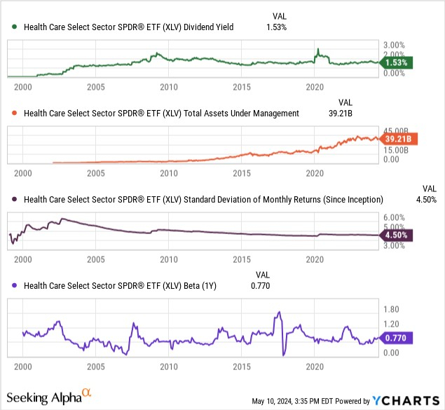此外,标普医疗保健行业精选ETF的股息收益率为市场平均水平,但从该基金的1年贝塔系数和标准差来看,其整体波动性较小。这对投资者来说是一个好迹象——该基金更稳定,在市场低迷时跌幅更小。