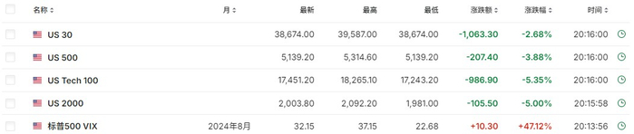 新加坡海峡时报指数跌幅扩大至3%,澳洲标普200指数跌3%,菲律宾股指跌幅扩大至2%,中国台湾证交所加权股价指数跌幅一度扩大至8%。美股期货集体下挫,纳斯达克100指数期货跌超5%,标普500指数期货跌近3%。