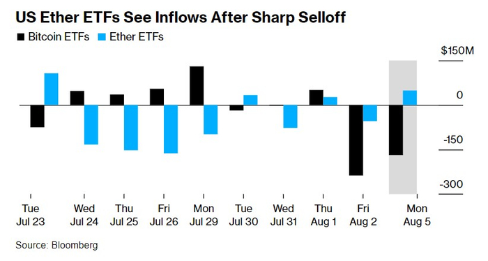 根据机构汇编的数据,青睐美股市场以太坊ETF的投资者们在周一加密货币暴跌期间,趁低价大举逢低买入ETF,九款以太坊ETF产品的净流入金额达到 4900 万美元,超过了灰度以太坊信托基金的流出金额。