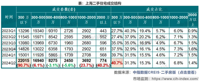 上海:2024年二季度300万以下二手住宅成交同比增长90.7%