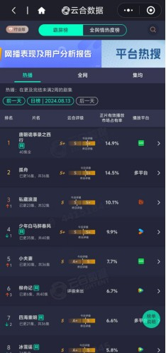暑期档《唐诡西行》大爆后,爱奇艺《孤舟》《九部的检察官》等表现强劲