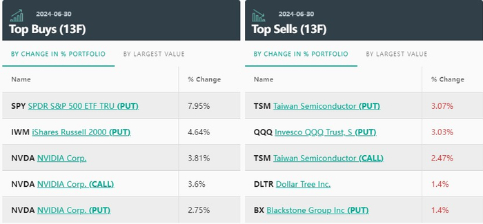 从持仓比例变化来看,野村前五大买入标的分别是:SPDR标普500指数ETF看跌期权、iShares罗素2000指数ETF看跌期权、英伟达个股、英伟达看涨期权和看跌期权。