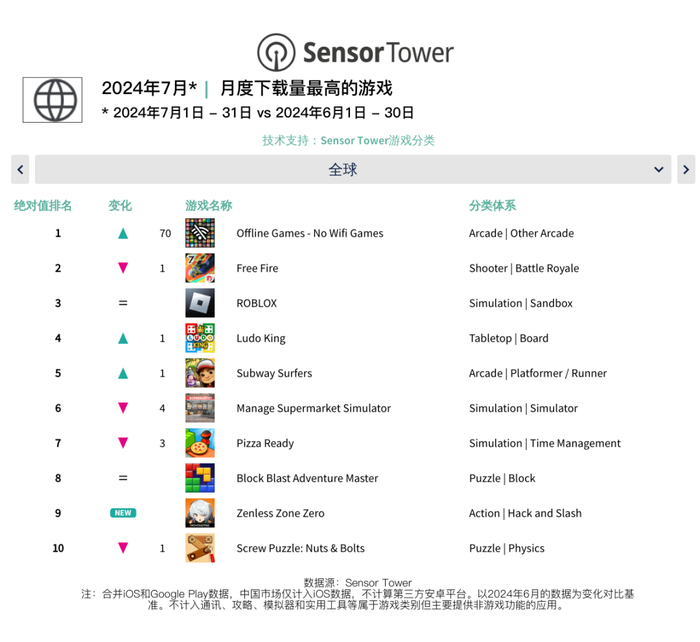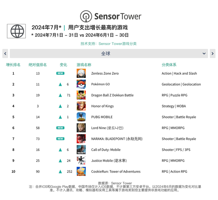 7月全球移动游戏市场快报:《绝区零》大热 强势横扫下载量和收入榜单