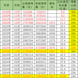 乘联会秘书长崔东树发文,根据乘联会整理的中国充电联盟的数据分析,2024年7月的公桩数量较上月增长8.76万个,快于去年同期增量41%;公桩年累增量48万个,同比去年同期增速达到17%。随车私桩较上月增长27.2万个,快于2023年7月增速27%;私桩年累增量152万个,同比去年同期增速17%。公桩充电量53万度,较同期增长较好,单桩月均充电1651度,较去年7月1470度增长较好。