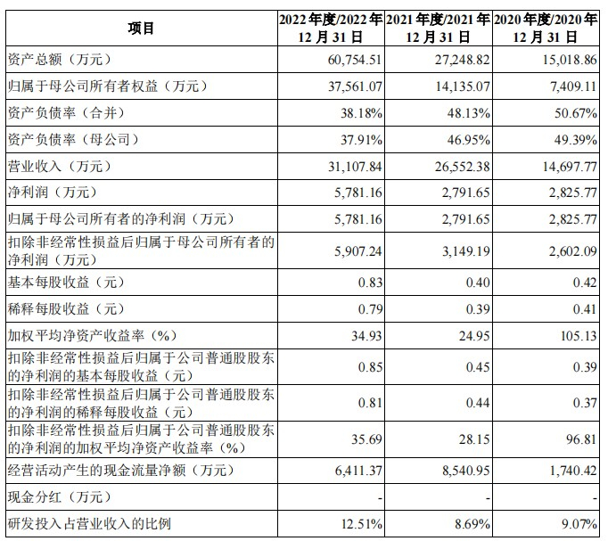 财务方面,于2020年度、2021年度和2022年度,风和医疗实现营业收入分别为约1.47亿元、2.66亿元、3.11亿元人民币;同期,该公司实现净利润分别为2825.77万元、2791.65万元、5781.16万元人民币。