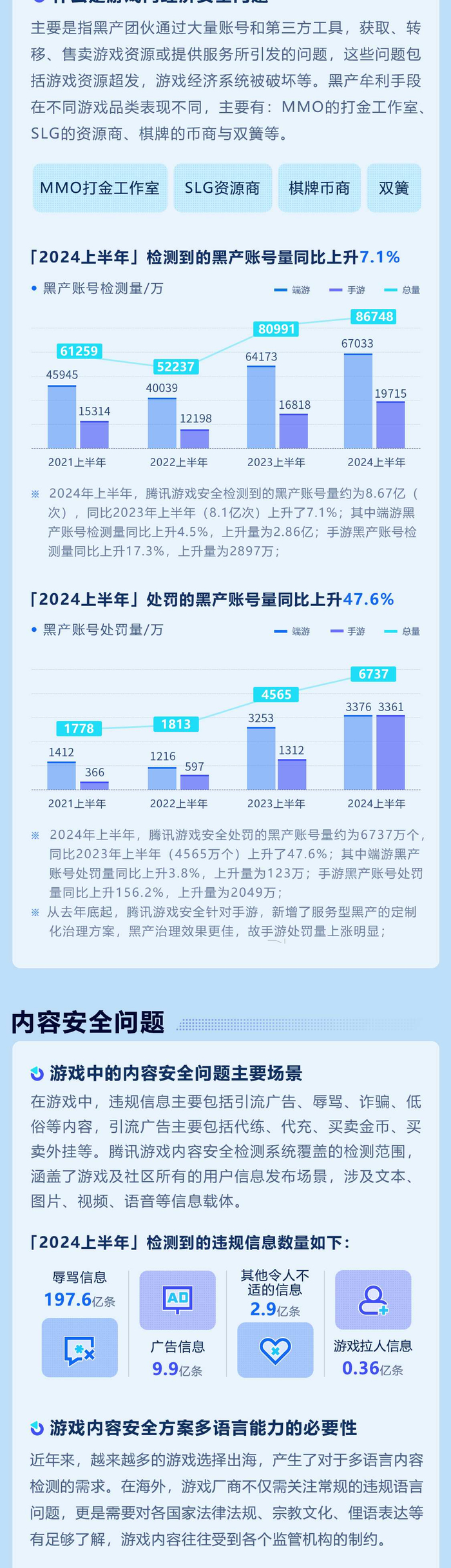 检测到的游戏黑产账号量达8.6亿,同比增长7.1%