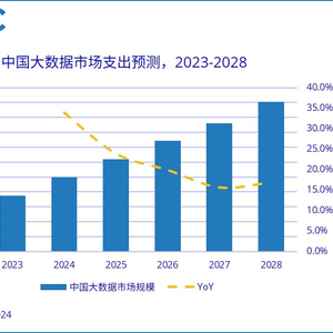 聚焦中国市场,IDC预计,2028年中国大数据IT支出规模预计为502.3亿美元,全球占比约8%,五年复合增长率约为21.9%,增速位居全球第一。