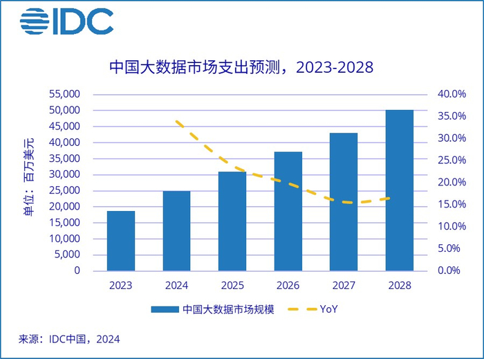 IDC:预计2028年全球大数据IT总投资规模约6244亿美元 五年复合增长率为16.3%
