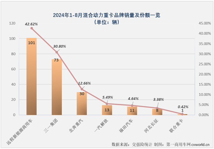 纯电车型占比继续超90%,混动重卡1-8月暴涨404%