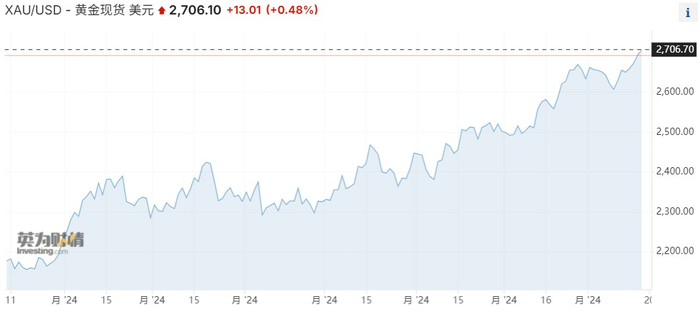 金价续刷新高!避险情绪升温 现货黄金升破2700美元