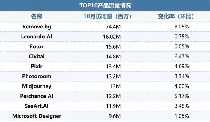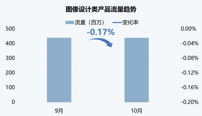 图像设计类品类本月环比下降0.17%,Remove.bg 超7000万次访问量继续领跑,行业呈现功能差异化趋势。