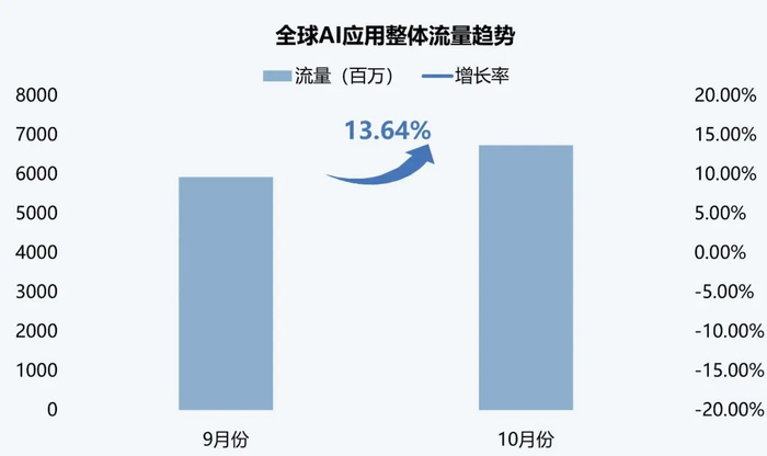 本月全球AI应用流量环比增长13.64%