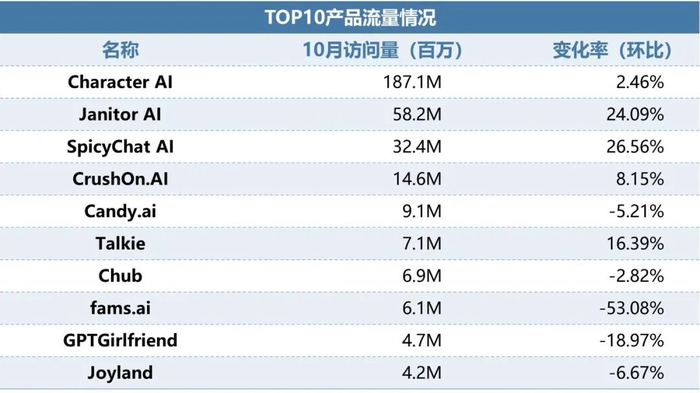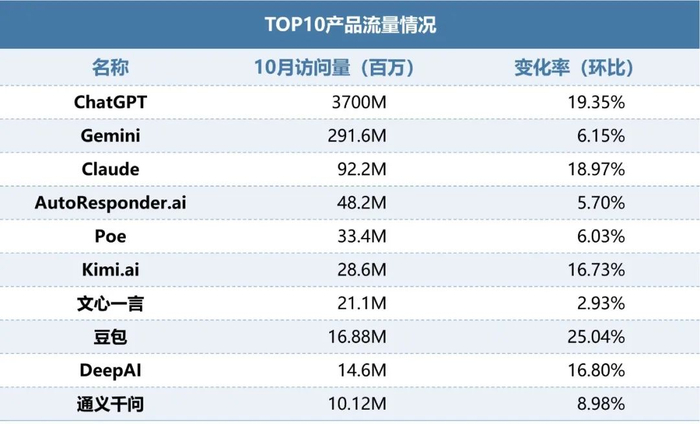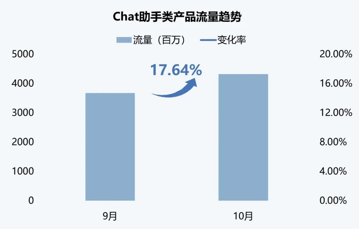 Chat助手类产品环比增17.64%,增长超6亿,Top10产品全线增长。