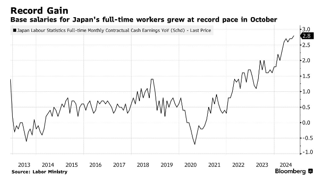 日本10月基本薪资增幅创纪录 为央行再次加息创造条件