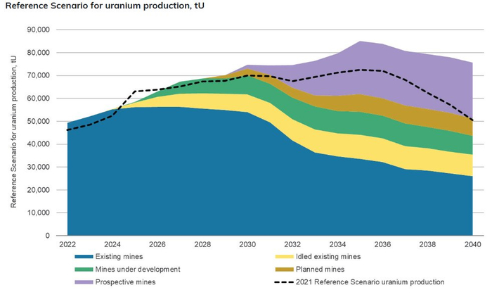 由于日本、德国等国政府修改了逐步淘汰核电的计划,一系列政策“180度大转弯”导致铀需求飙升。根据世界核协会的数据,到2030年,来自反应堆的铀需求预计将增长28%,到2040年将增长近一倍。