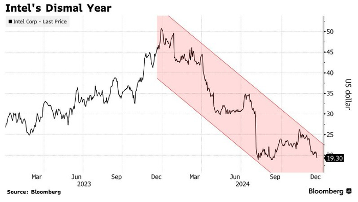 一家来自美国的老牌芯片巨头——英特尔(INTC.US),虽然也受益于AI热潮,但是相比于其长期竞争对手英伟达与AMD来说堪称AI军备竞赛之下的最大输家,最关键的是该公司的扭亏为盈计划遭遇重大挫折,公司基本面持续恶化导致股价暴跌,最终导致其首席执行官被迫离职。