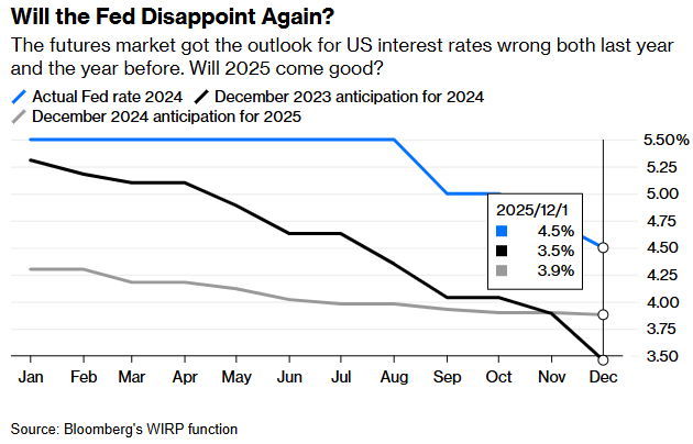 去年和前年,期货市场对美国利率的预测都是错误的。2025年会好起来吗?