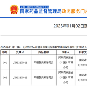 1月2日,国家药监局网站显示,阿斯利康(AZN.US)的奥希替尼新适应症上市申请正式获得批准,用于治疗在接受含铂根治性放化疗后未出现疾病进展、具有表皮生长因子受体(EGFR)外显子19缺失(Ex19del)或外显子21(L858R)置换突变的局部晚期不可切除(III期)非小细胞肺癌(NSCLC)成人患者。